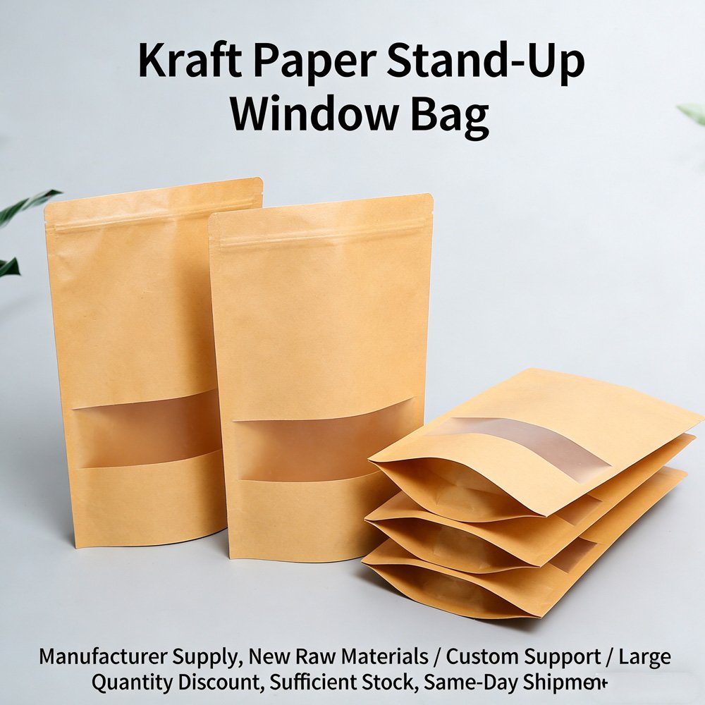 2026 New Style Kraft Paper Stand-Up Window Bag, Manufacturer Supply, Multiple Sizes Available, Custom Processing Supported
