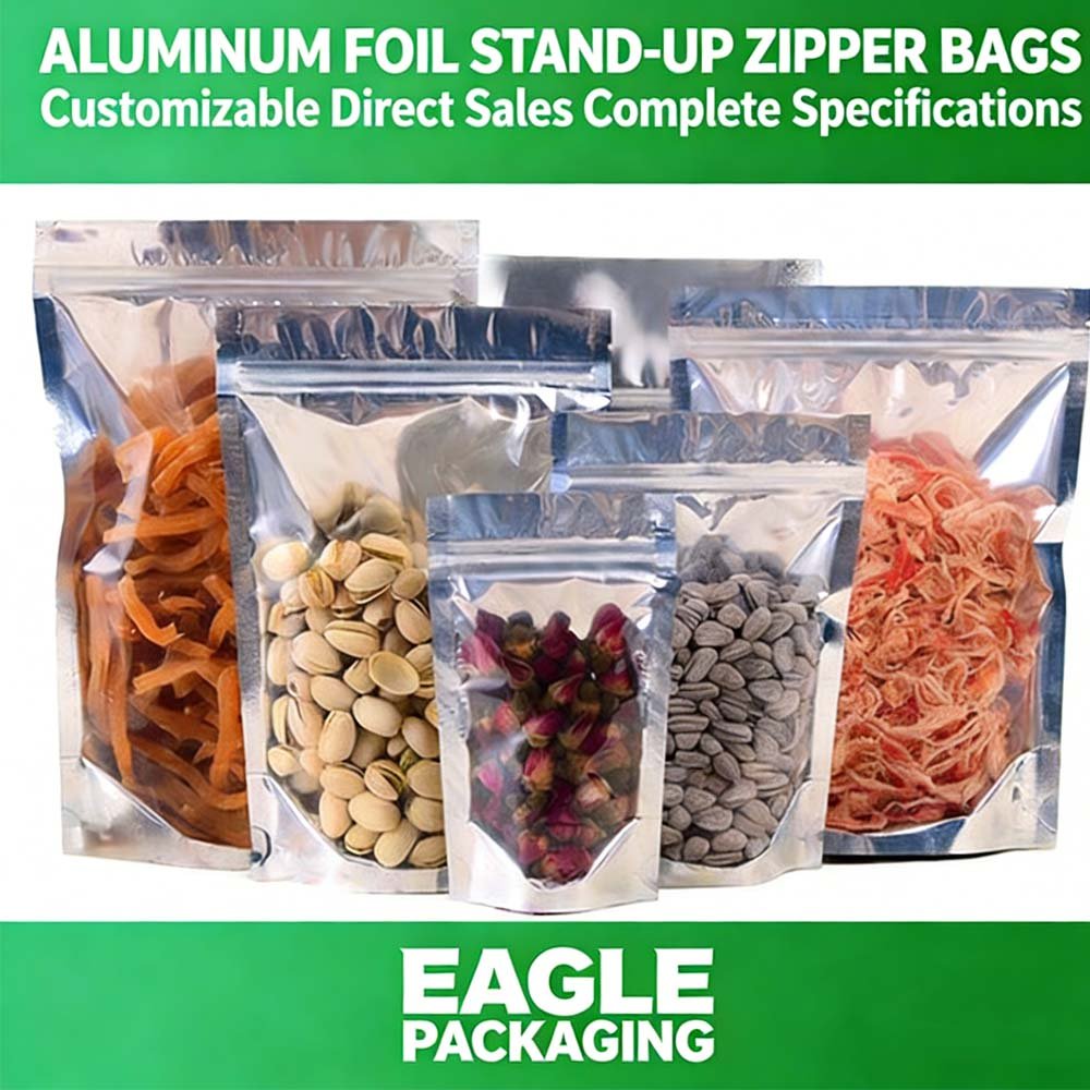 Aluminum-coated yin-yang self-standing self-sealing bags, semi-transparent food packaging bags, aluminum foil bags, sealed bags for dried fruits and snack foods