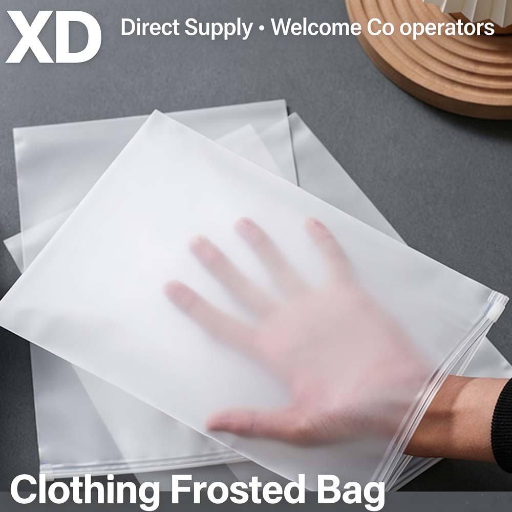 Double-sided transparent matte PE clothing zipper bag, autumn and winter clothing packaging bag, eva matte bag zipper bag customization