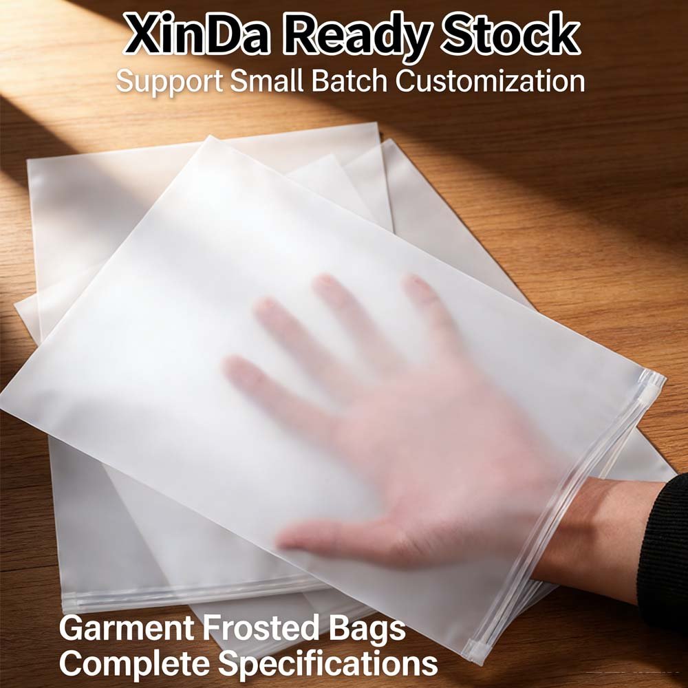 EVA frosted zipper bags, PE transparent packaging bags, frosted self-sealing bags with printed logos for autumn and winter clothing
