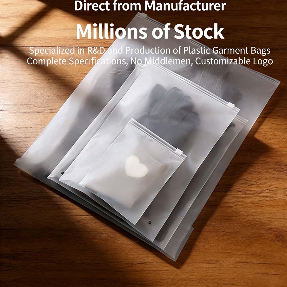 Frosted zipper bags in stock. Frosted bags with printing, transparent pe clothing packaging bags, plastic self-sealing bags, CPE zipper bags