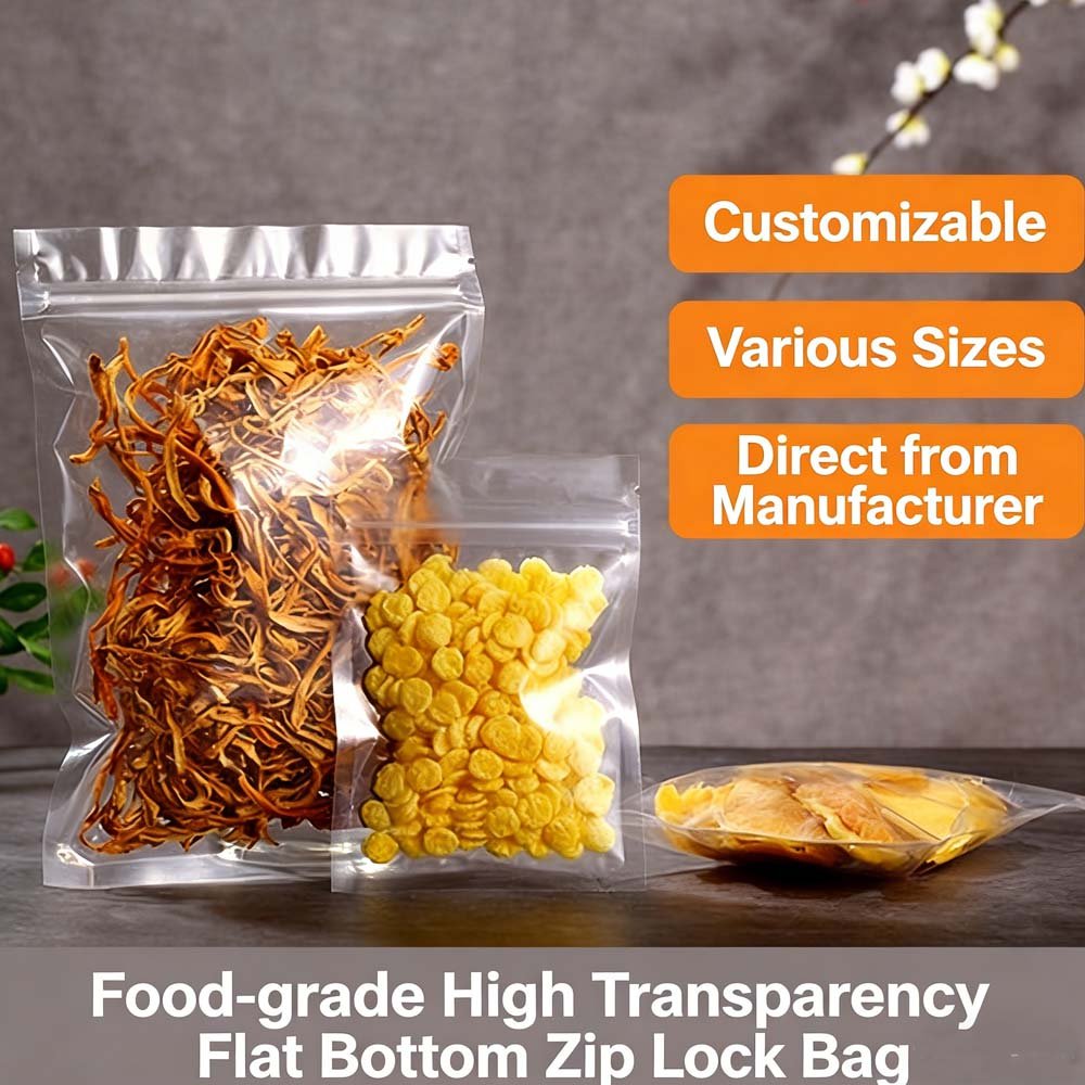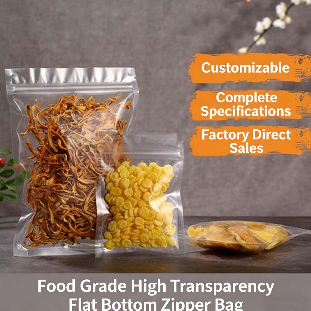 High transparency flat bottom self-sealing bag, bone bag, dried fruit flower tea food packaging bag, pet transparent zipper bag, sealed bag