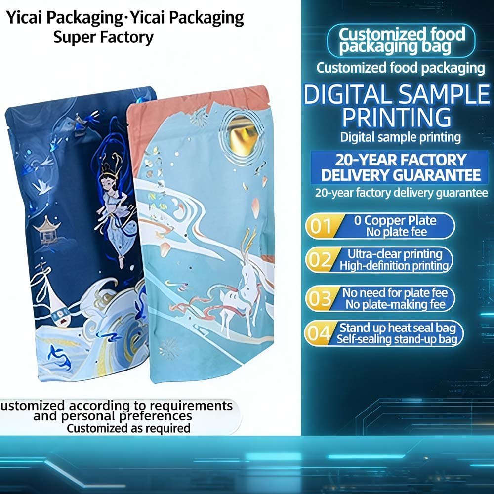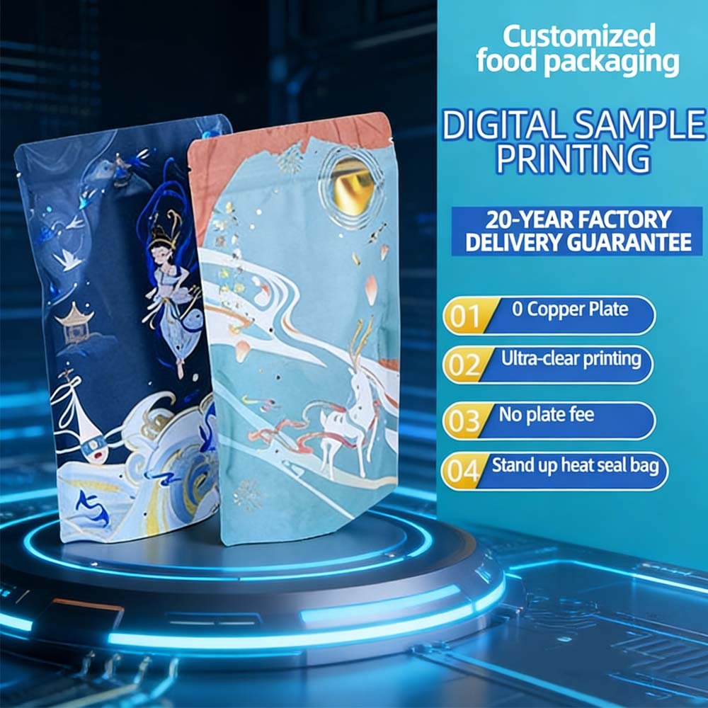 Custom Cross-Border Stand-Up Resealable Zipper Snack Bags - 3-Sealed Edges, Digital Printing, Hot Stamping, Laminated Aluminum Foil