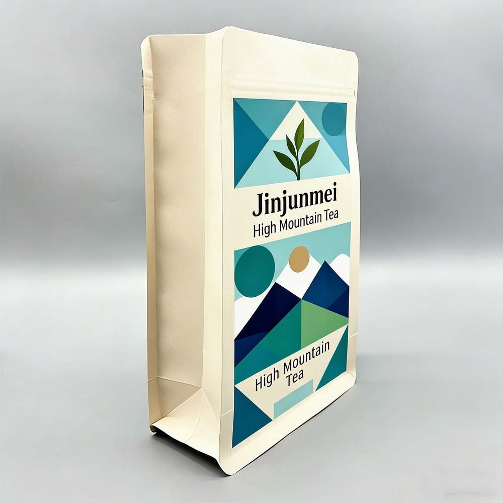Eight-sided sealed tea bags, 500g plastic packaging bags for black tea, self-standing bottom aluminum-coated food self-sealing bags, printed flower tea bags