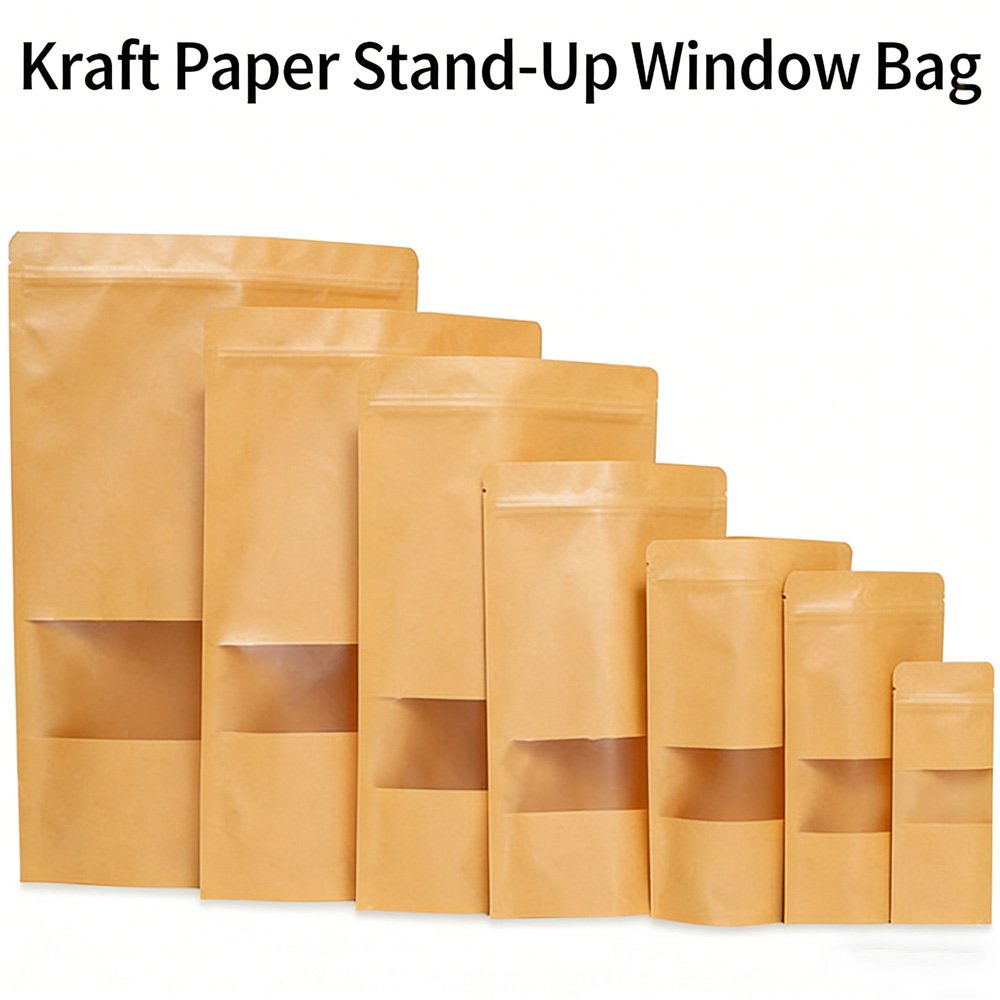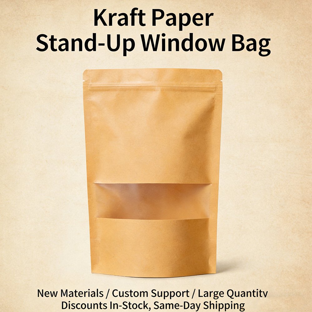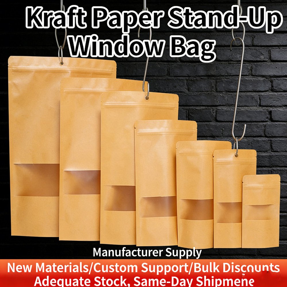 2026 New Style Kraft Paper Stand-Up Window Bag, Manufacturer Supply, Multiple Sizes Available, Custom Processing Supported