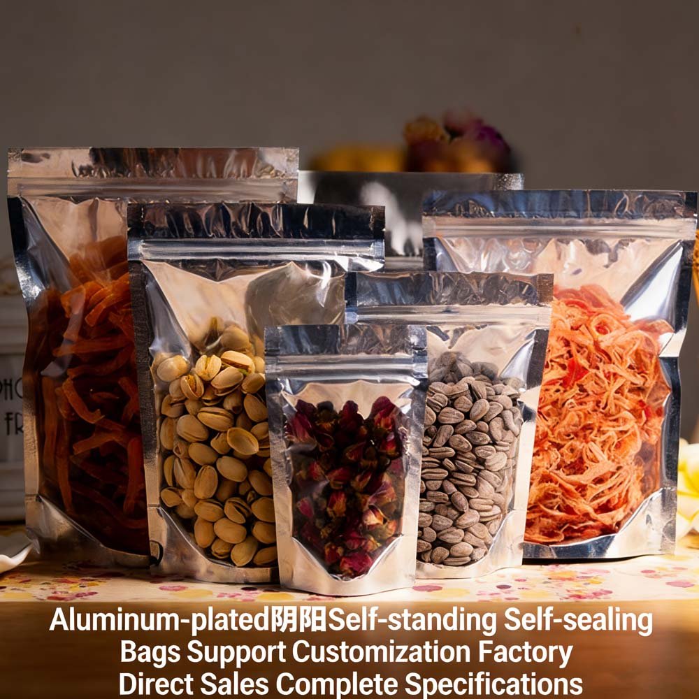 Aluminum-coated yin-yang self-standing self-sealing bags, semi-transparent food packaging bags, aluminum foil bags, sealed bags for dried fruits and snack foods