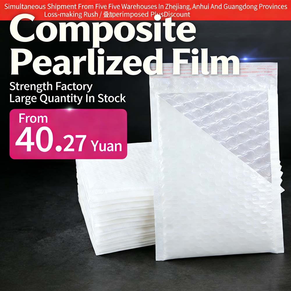 Composite pearlescent film bubble envelope bag, white shockproof clothing packaging bag, waterproof foam bag, clothing express delivery bag