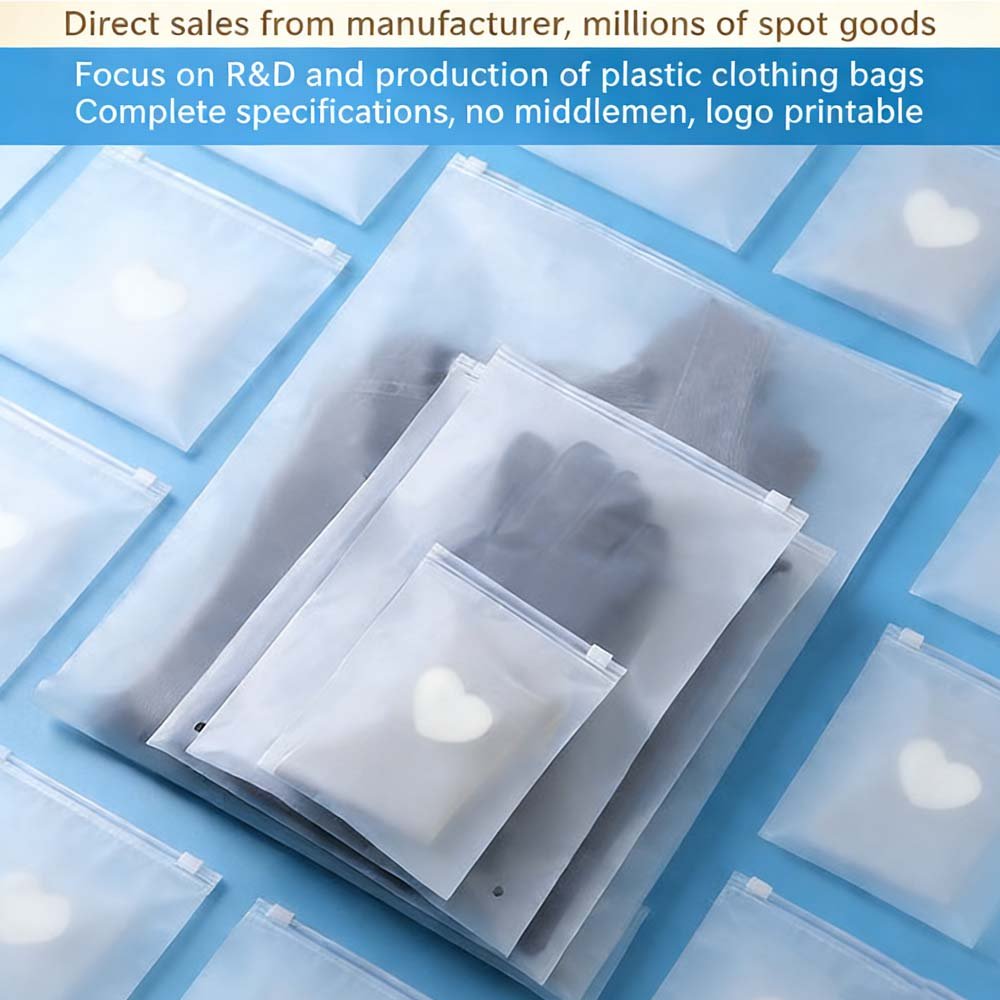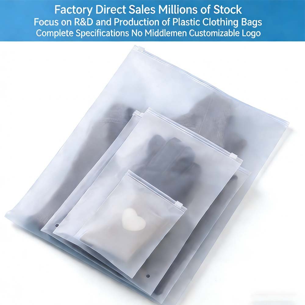 Frosted zipper bags in stock. Frosted bags with printing, transparent pe clothing packaging bags, plastic self-sealing bags, CPE zipper bags