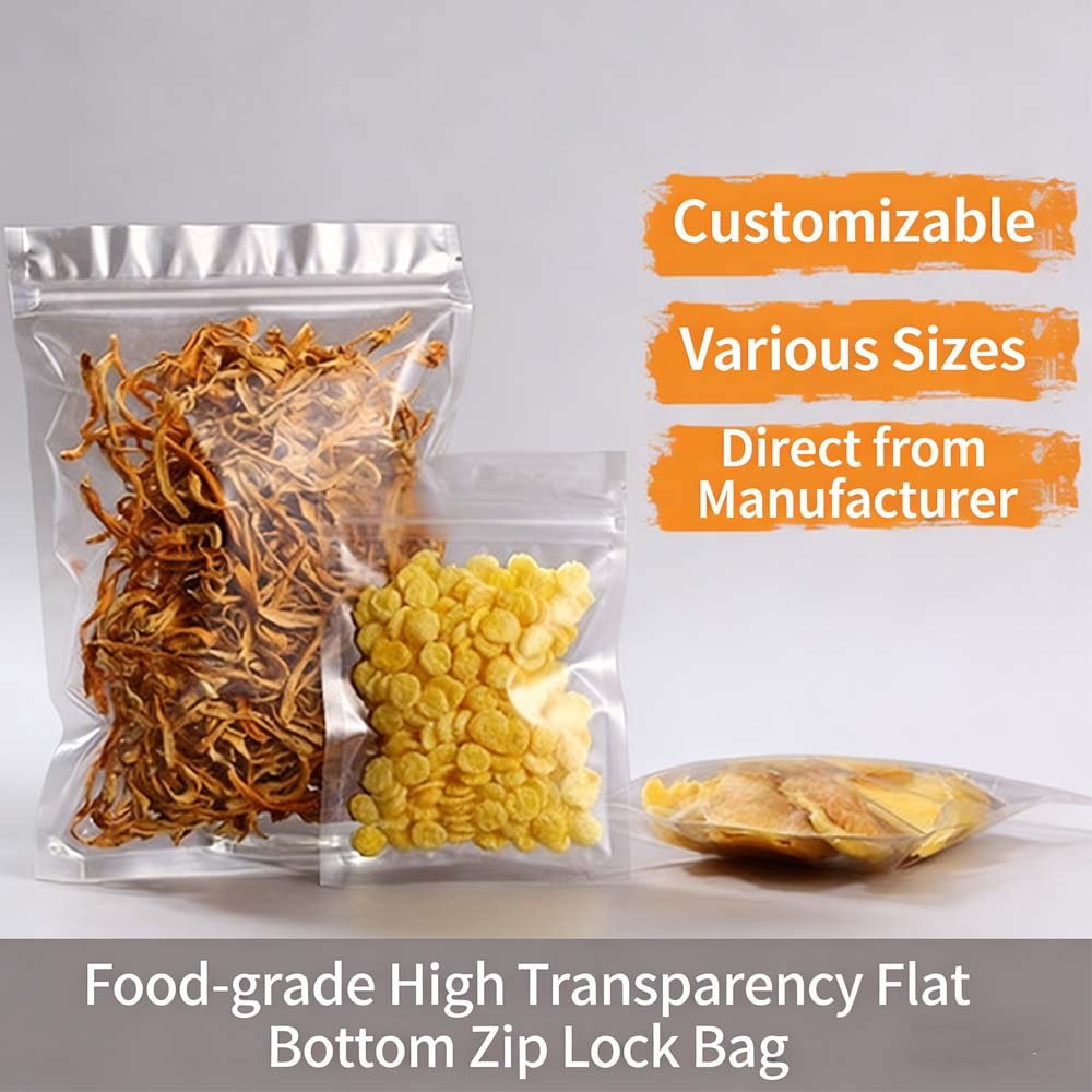 High transparency flat bottom self-sealing bag, bone bag, dried fruit flower tea food packaging bag, pet transparent zipper bag, sealed bag