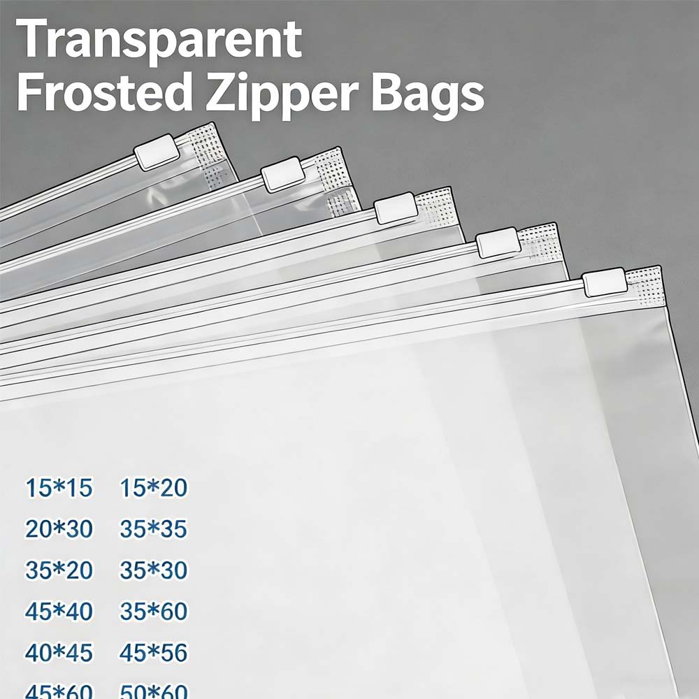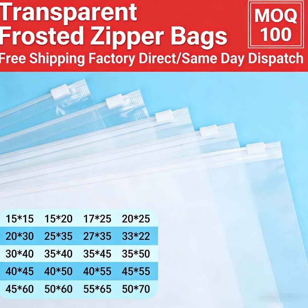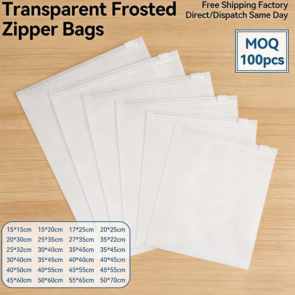 Transparent frosted clothing zipper bags in stock, wholesale with free shipping, self-sealing bags for clothes and underwear storage, plastic packaging bags