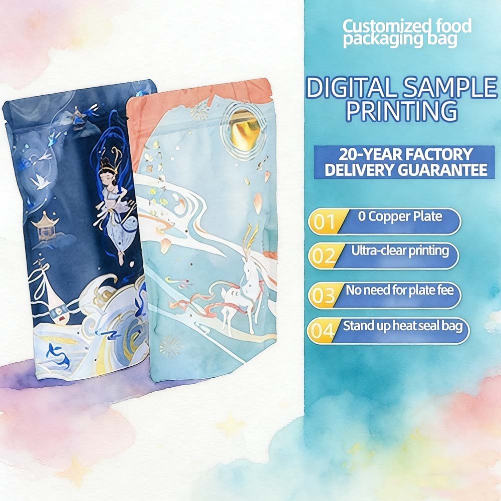 Custom Cross-Border Stand-Up Resealable Zipper Snack Bags - 3-Sealed Edges, Digital Printing, Hot Stamping, Laminated Aluminum Foil