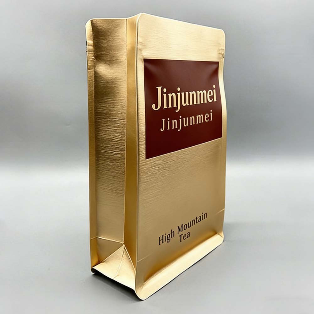 Eight-sided sealed tea bags, 500g plastic packaging bags for black tea, self-standing bottom aluminum-coated food self-sealing bags, printed flower tea bags